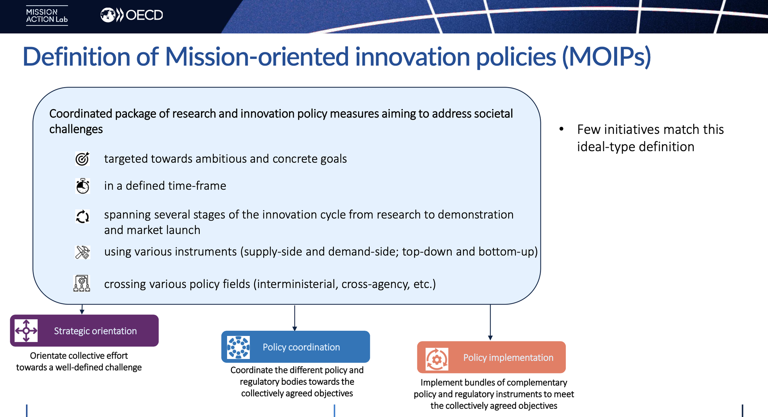 Figure 3. Definition and core characteristics of mission-oriented innovation policies (MOIPs).